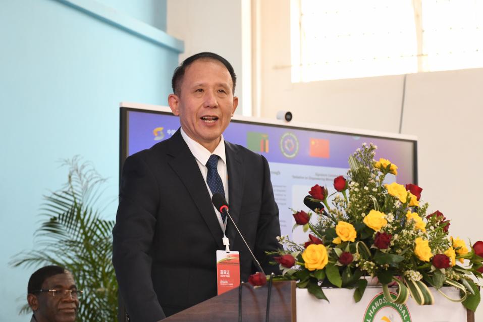 在裁判代表與參賽選手代表分別宣誓后,中國有色集團(tuán)贊比亞代表處主任宋建軍宣布中國有色集團(tuán)贊比亞企業(yè)屬地員工技能競賽開幕。